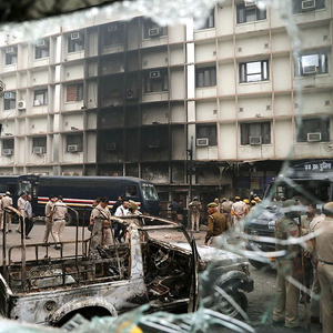 燃烧的汽车、冒烟的大楼、破碎的玻璃……这并非某个颜色革命的街头战场,而是印度首都地区的一个法院大楼。