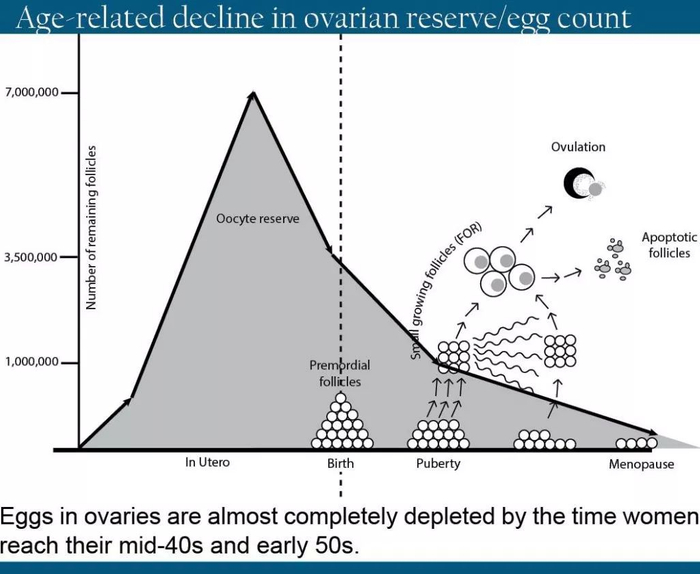 而造成女性生育能力下降的,除了身体机能的下降以外,最主要的原因是功能正常的卵细胞耗尽。