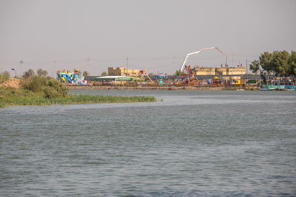 由于近代战火弥漫、发展迟滞,幼发拉底河流经的许多地方,如今格外萧瑟,炙热的温度似乎要把从古到今孕育的一切生命力都吞噬殆尽。在两河交汇处的幼发拉底河沿岸,有个人气寥寥的游乐场。几个身穿黑袍的女人,带着孩子在这里玩耍。花花绿绿的游乐设施,突兀地屹立在河岸,大概算是现代文明和古文明一次不伦不类的碰撞吧。