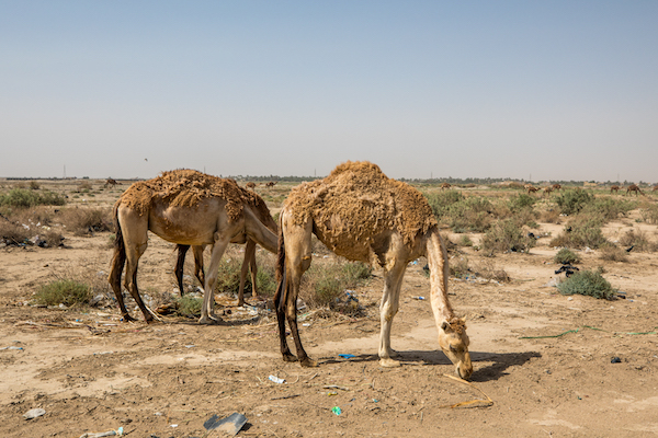 通往大沼泽的路程大体顺利,虽然两个检查站都花了不少时间反复核对我的签证。沿途依然是伊拉克标志性的荒漠地貌,偶尔能瞥见几只被放牧的阿拉伯单峰骆驼和几个开着卡车在路边卖西瓜的阿拉伯人。司机向好几个村民打听了一番,才找到了通往中央沼泽(Central marshes)的路。