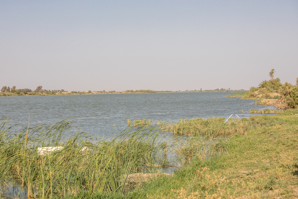 看着河岸偶尔出现的低矮建筑和大片荒草,我终于明白了当我在巴士拉问酒店老板,库尔那沿岸有没有比较高的建筑可以俯瞰两河时,他为什么那么惊讶。撇去地理意义不说,这不过就是一个极其普通的村子,无人问津、无人关注,就像那些四散在伊拉克南部的遗址一般,更不会有人建一个高耸的建筑供游人登高望远。纵然几千年前,这片平原曾点亮了文明之火,两条河流曾浇灌出了文明之光,但所有的光辉与荣耀,早已被泥土和风沙所淹没。