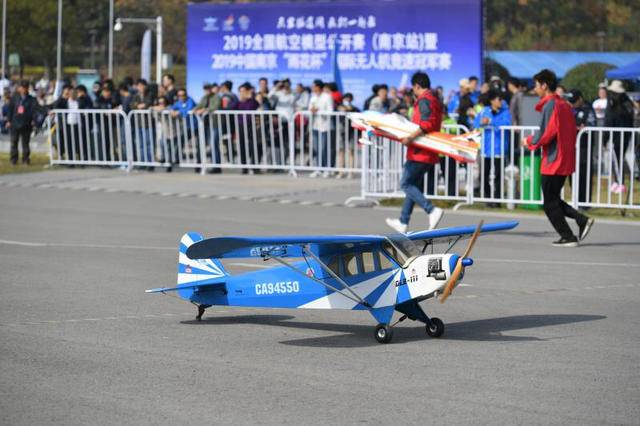 扬子晚报网11月3日讯(通讯员 蒋丽媛 记者 徐媛园)11月2日,2019年全国航空模型公开赛(南京站)暨中国南京“雨花杯”国际无人机竞速冠军赛在板桥新城莲花湖体育公园隆重举行,来自16个国家和地区的种子选手以及来自全国各省、市的110多名航模爱好者参加了此次比赛。比赛中,无人机竞速项目吸引了众多观众的目光。