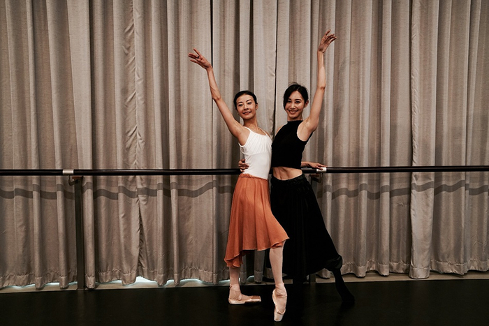 “西方天鹅”谭元元(左)与“东方朱鹮”朱洁静(右)聚首。