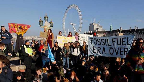 2018年11月,国际性非政府环保组织“灭绝反叛”(Extinction Rebellion)在英国首都伦敦发起的一场呼吁保护环境的抗议活动。
