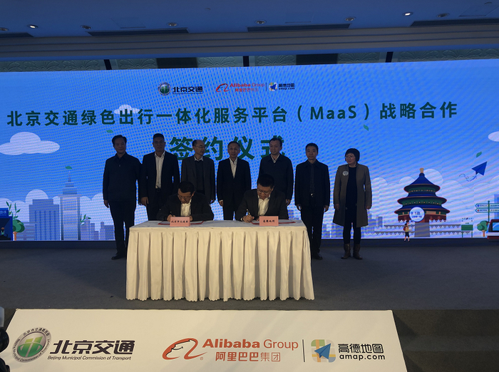 4日下午,北京市交通委与阿里巴巴旗下高德地图签订战略合作框架协议,共同启动北京交通绿色出行一体化服务平台(以下简称“北京MaaS平台”)。今后,高德地图APP不仅提供驾车导航服务,还上线实时公交、地铁拥挤度查询服务,同时将整合市郊铁路、网约车、航空、铁路等全品类交通出行服务。