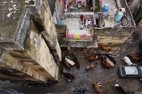 “许多人来印度,很诧异地发现城市里能看到很多动物。牛、猴子、狗、骆驼、大象,甚至孔雀……它们自然地出现在人们的生活场景里,同时人们对动物很好。”