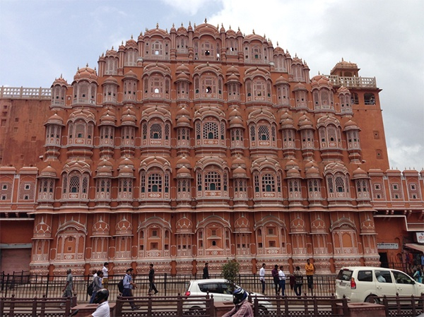 斋浦尔素有“印度粉红色之城”之称,图中建筑为风之宫殿。