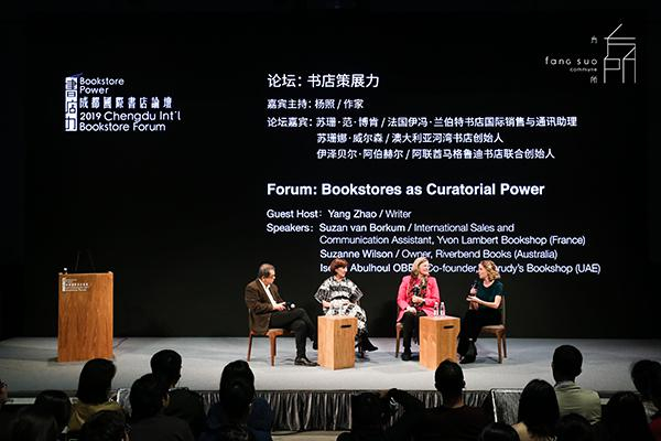 11月2日下午,“2019成都国际书店论坛”期间,法国伊冯·兰伯特书店国际销售与通讯助理苏珊·范·博肯、澳大利亚河湾书店创始人苏珊娜·威尔森、阿联酋马格鲁迪书店联合创始人伊泽贝尔·阿伯赫尔齐聚方所成都店,共谈“书店策展力”。作家杨照担任此次论坛主持。