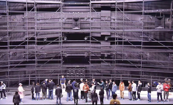 在加拿大IMAX工程师的指挥下,在影厅内搭起的钢架上垂下了数条长绳,将银幕一端系上长绳,并由10余位“挂幕勇士”爬上高达十余米的银幕架将银幕缓缓拉起,并固定就位。经过一个多小时的努力,完成了挂幕工作。
