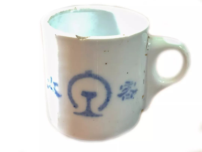 当时倒茶的水杯有6两左右的重量,现在看起来略显笨重,但在当年却很实用。