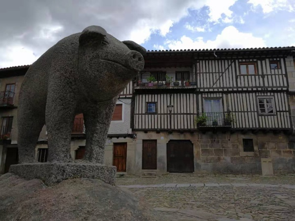 阿尔贝尔卡的火腿属于西班牙四大火腿产区之一的萨拉曼卡产区。山区的野生橡实和泉水赋予它一股山野的清香。本地人对猪有着特别的情感。在教区本堂门口的广场上,有一座憨态可掬的猪雕像。