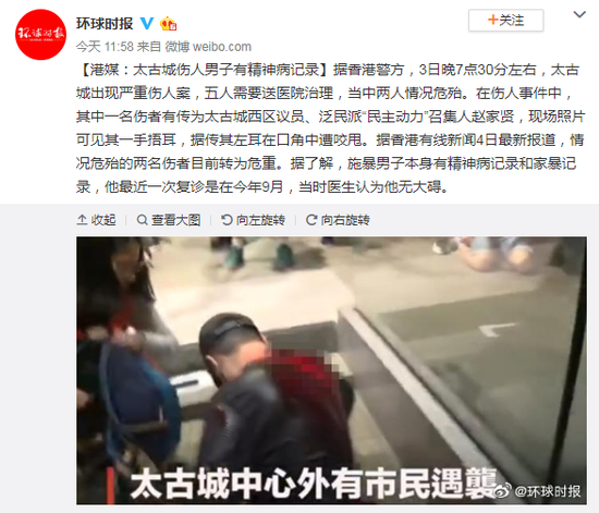 原标题:港媒:太古城伤人男子有精神病记录