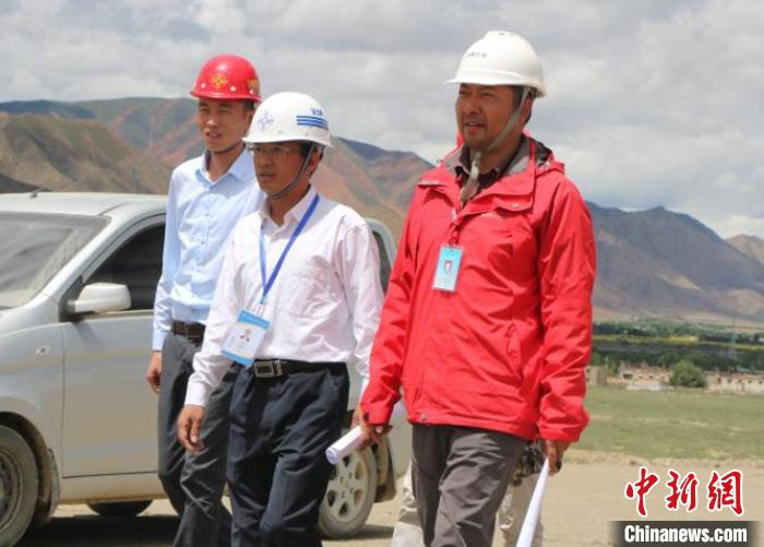 旺杰次仁(右一)在参与项目巡查。西藏自治区交通运输厅供图