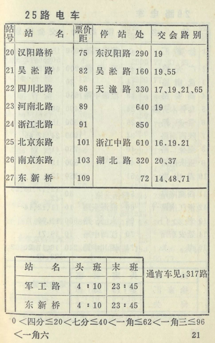 1959年公交手册:25路电车线站票价表