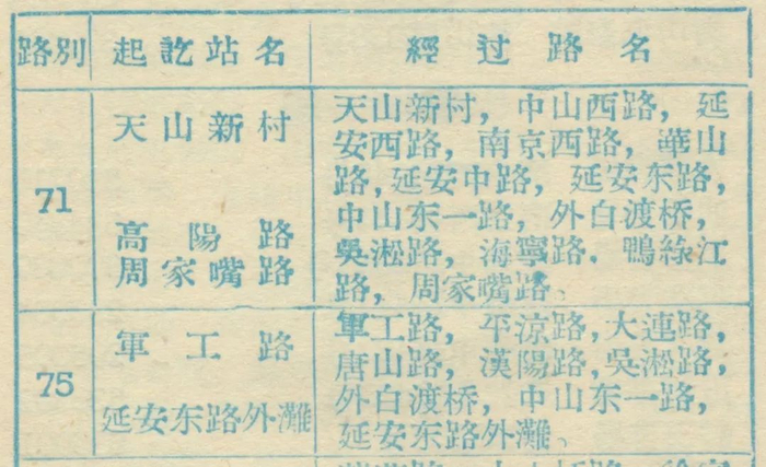 1957年生活手册:71路和75路公交信息
