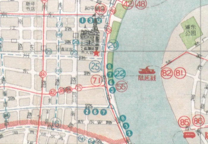 1960年地图:延安东路外滩25路和71路接头处