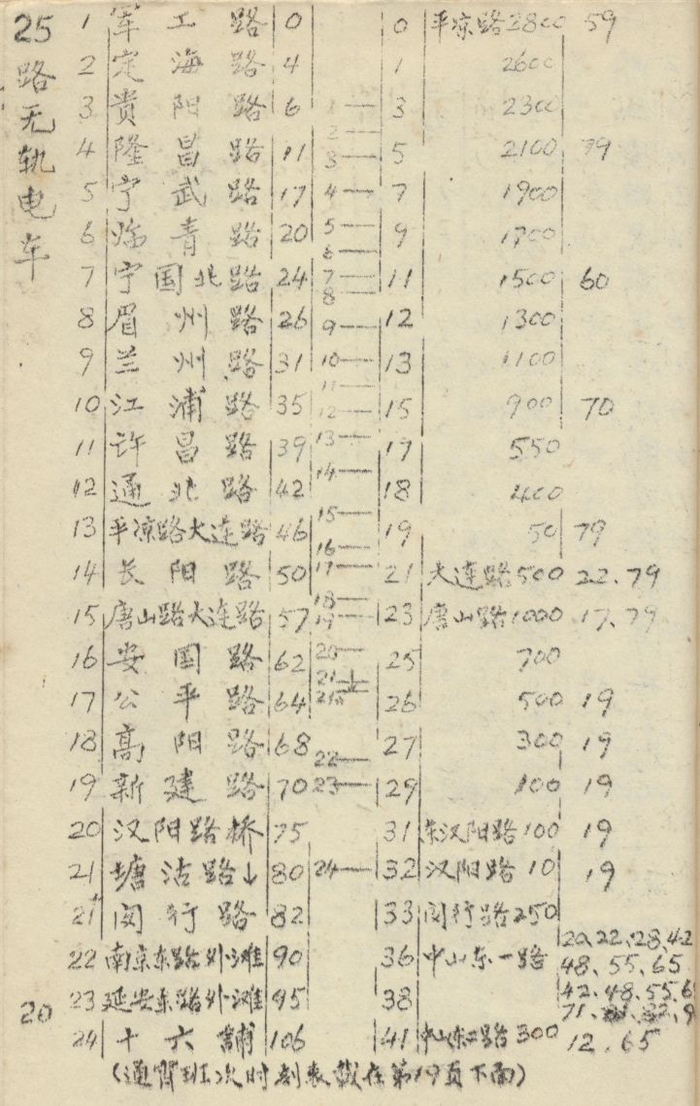 1980年“手册”:25路电车信息表