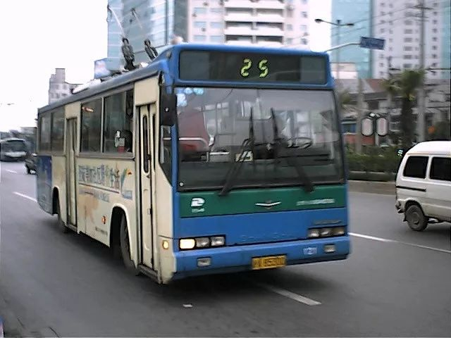 2001年12月,行驶在河南北路海宁路口的25路电车,配车SK5115GP-3型(朱达艺 摄)