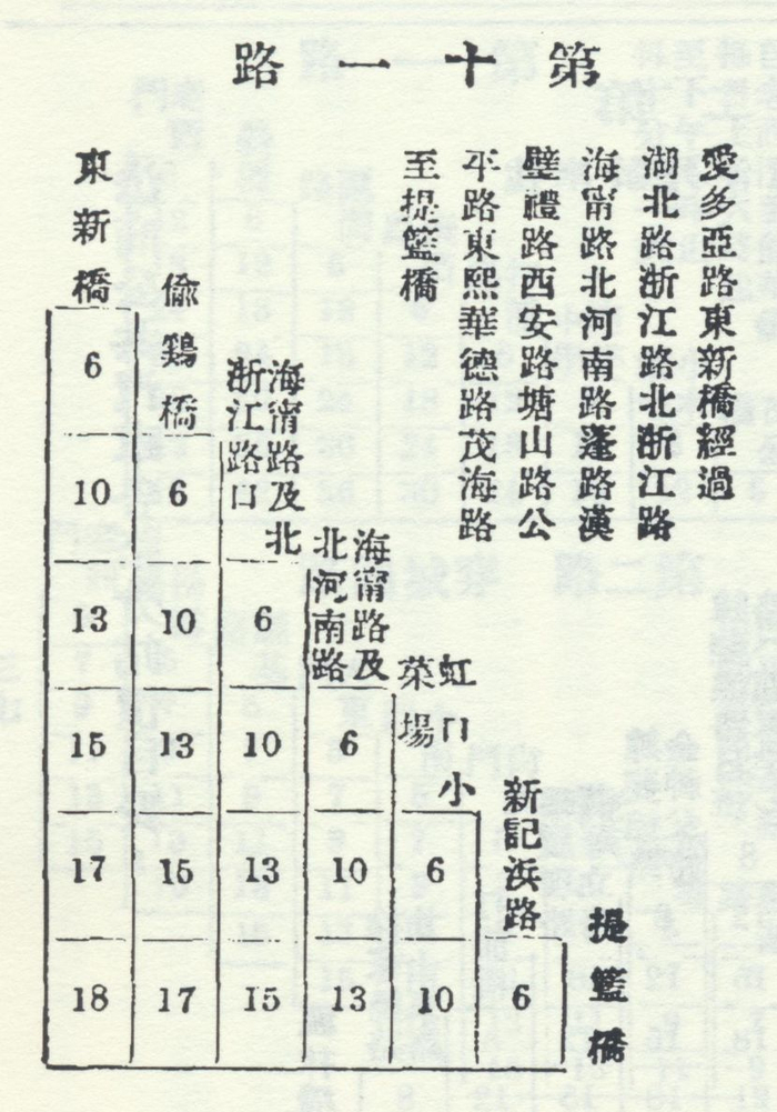 1933年“指南”:11路汽车票价表(停驶前)