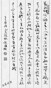 但是,赵国柱对大草的情结更为强烈。近些年,他已渐趋完成从章草到大草的创作转型。由于根基于章草古法,他的大草虽极于狂肆,但酌华而不失奇,而是将狂草的个性表现始终置于古法的理性表述之中。这是赵国柱草书的入古处,因而狂不变乱。这种古法的积淀使得其狂草在表现出唐人及明人狂草的大格局下,又处处洋溢着理性的优雅。