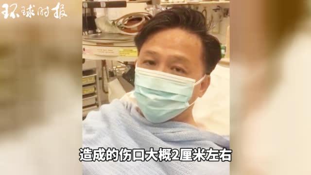 视频|何君尧遇袭受伤后露面发声:伤口大概2厘米