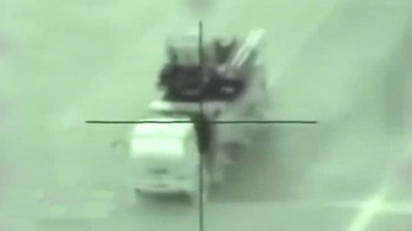 以色列公布的以军导弹即将命中叙军“铠甲S1”防空系统视频截图。