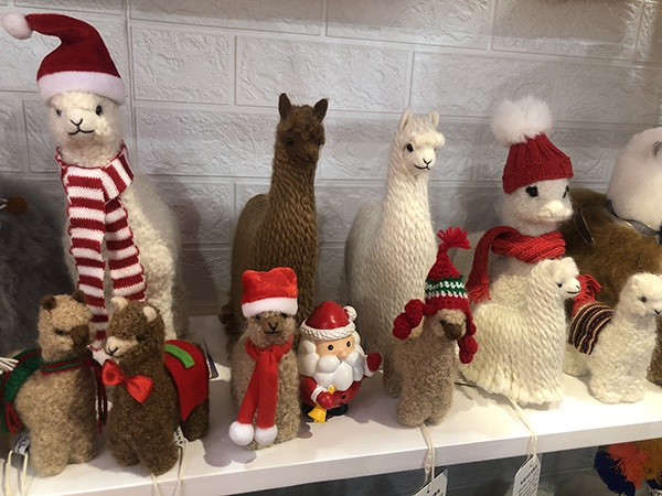 展馆虽小,馆内陈设的众多羊驼毛制品还是引来了众多参展者围观和购买。众多产品中,以大大小小、五颜六色的羊驼玩偶最为吸睛。此外,还有羊驼毛围巾、耳罩、座垫、钥匙扣、拖鞋、床上用品等产品。