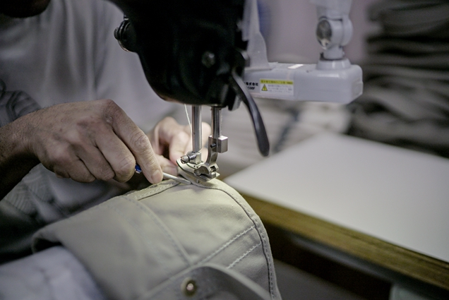 信三郎带我参观了整个生产过程。两个裁布工专司裁布的环节,十组左右的职人制包,两人一组,一个做缝纫,一个缝商标和五金件,是助理(“下职”)。他们合作,做不同的包。比较简单的单肩包,一天一组可以做20个。信三郎说:“麦当劳那样的生意是讲分工的,我们不分,因为觉得一个人只做一种包,他会很无趣。”