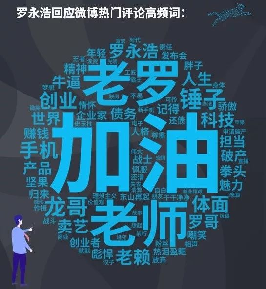 回应前回应后,网友们的聚焦点已然发生变化。当我们采集罗永浩相关微博的热门评论后,发现了更有意思的数据。