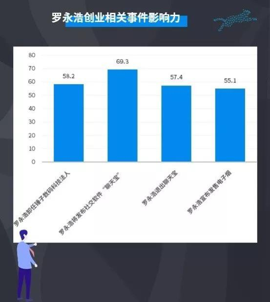 作为创始人的罗永浩,从卸任锤子数码科技法人后,一路创业,每次都能引发不小的讨论。其中“罗永浩将发布社交软件聊天宝”这一消息获得了极高的关注,影响力达69.3,不过最终,罗永浩还是退出了聊天宝。