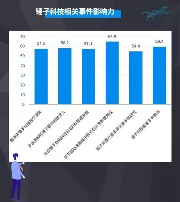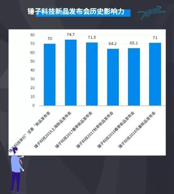 罗永浩一手创立的锤子科技,也确实辉煌过。此前锤子科技每一次的发布会,都取得了很高的热度。其中热度最高的“锤子科技2016上海新品发布会”,影响力高达74.7,超过了97%的企业类事件。