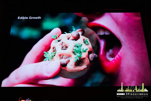 奥地利 Honey and Bunny 跨学科创意工作室创始人则在现场分享了其策划的关于“食品设计”的展览,在他们的设计里,食物成了可观、可思考的艺术品,而吃东西仿佛成为了一种行为艺术。