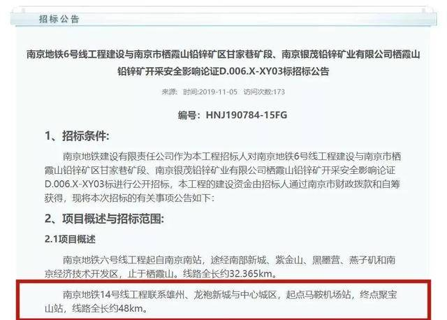 扬子晚报网11月6日讯 (记者 周海燕) 11月5日,南京地铁发布了地铁14号线的消息,描绘了“14号”南北走向“过江线”的傲娇身线,不仅连接雄州、龙袍新城与中心城区,起点为马鞍机场站,终点为聚宝山站,全长也将由34.2公里延长至48公里。