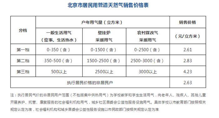 11月7日晚间,北京市发改委对外发布消息,因上游供气价格调整,经市政府同意,11月15日起,北京市管道天然气销售价格、非居民供热价格相应调整。