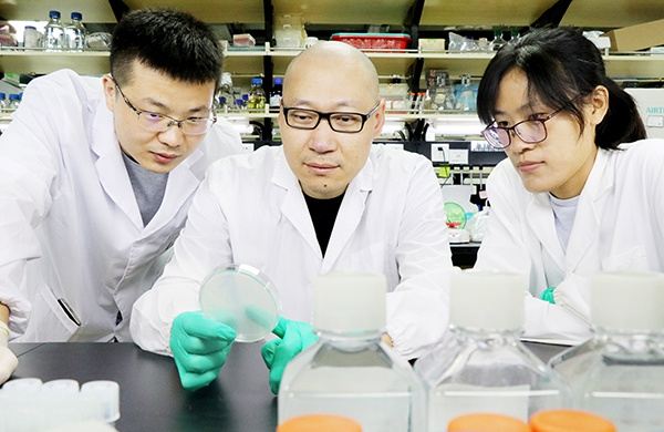 刘陈立团队,由左至右:李登进(共同作者),刘为荣(共同第一作者),刘陈立(通讯作者)。