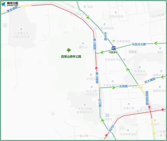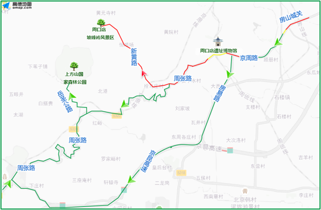 周末期间,海淀百望山地区黑山扈路、房山坡峰岭周张路—新黄路车流量较大,去往百望山、坡峰岭游玩时可错开周末上午的出游高峰,或绕行其他道路。