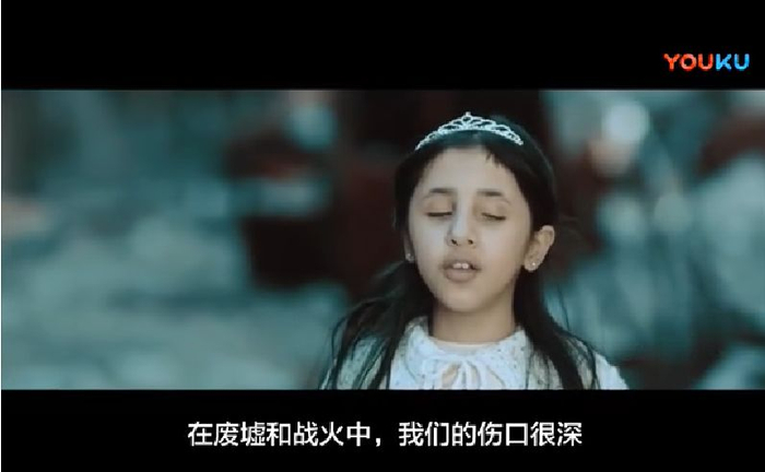 这是一个叙利亚女孩在《好声音》节目中唱的一首反战歌。“为什么我们没有节日的装扮和狂欢?我们的土地被烧毁,我们的自由被偷走……”音乐很悲伤,小女孩的声音很动听。