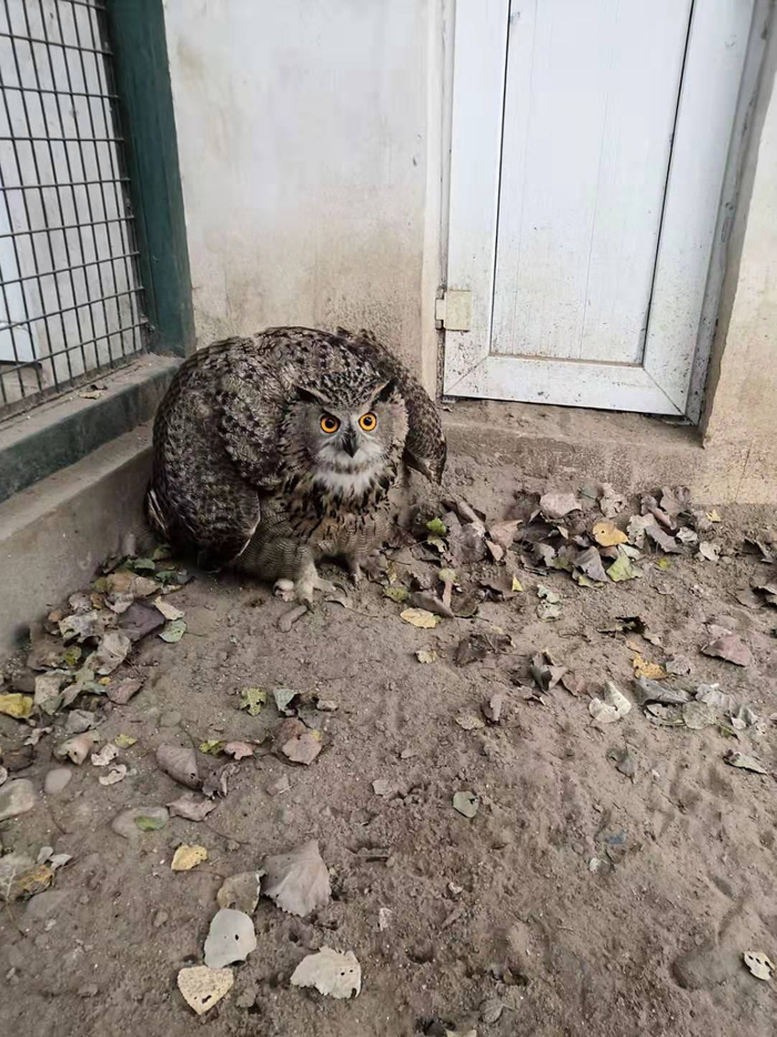雕鸮是人们俗称的猫头鹰的一种,国家二级保护动物。秋冬季节,因为食物短缺,不少猛禽会偷吃村庄中饲养的家禽。这只雕鸮就是在饱餐过程中被村民发现的。救护中心工作人员在接受这只猛禽时,做了例行的身体检查,没有发现任何伤病,“就是饿了。”