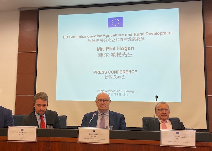欧盟农业和农村发展委员、候任贸易委员霍根霍根(Phil Hogan)也在此期间访华。于7日在北京举行的一场记者会上,霍根表示:“中欧合作应以结果为导向,谈判工作组应在市场准入等领域做出切实努力,在明年的领导人会晤前取得实质性进展。”