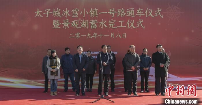 8日,崇礼太子城冰雪小镇一号路市政配套工程通车仪式暨景观湖蓄水完工仪式在崇礼举行。主办方供图