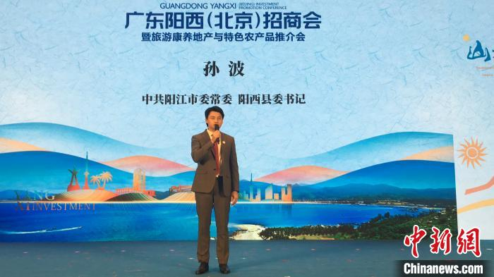 广东省阳江市委常委、阳西县委书记孙波8日在于北京举行的广东阳西(北京)招商会上讲话。(主办方供图) 钟欣 摄