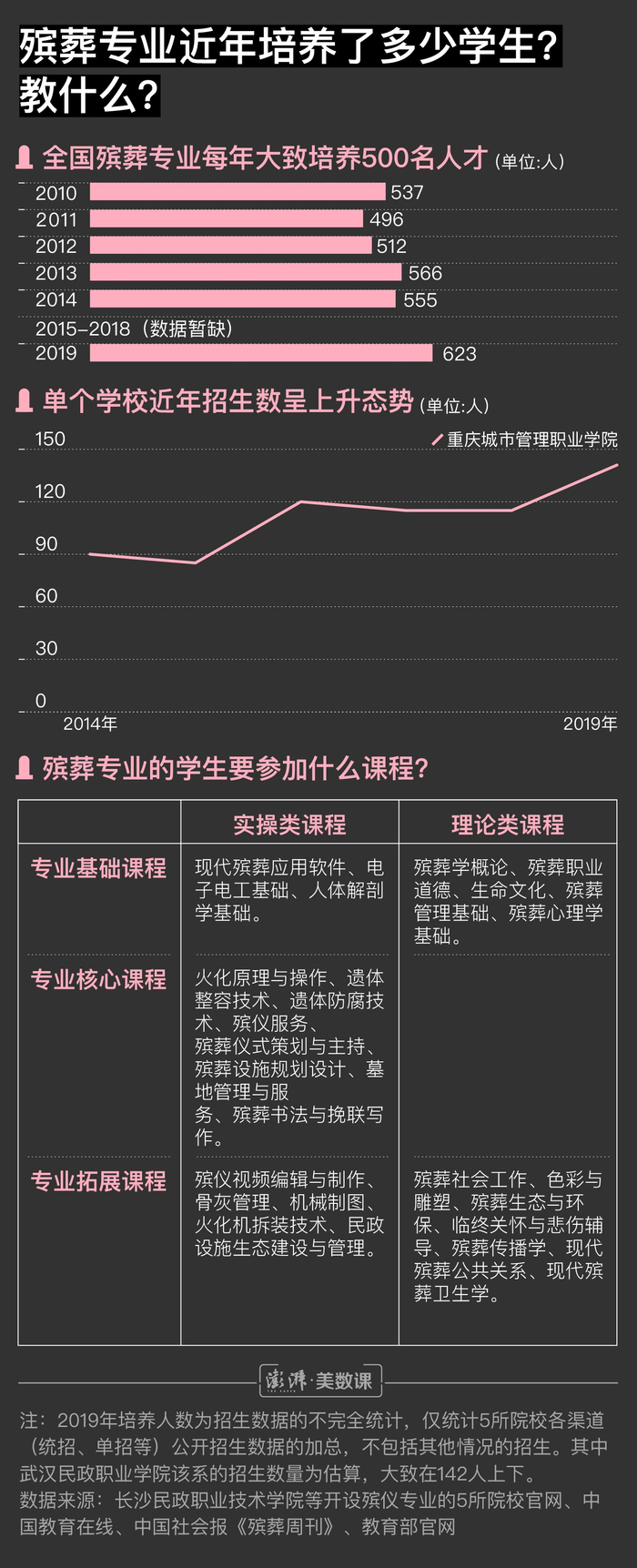 而据澎湃新闻(www.thepaper.cn)统计,目前,全国仅5所高职院校开设“现代殡葬技术与管理”专业。