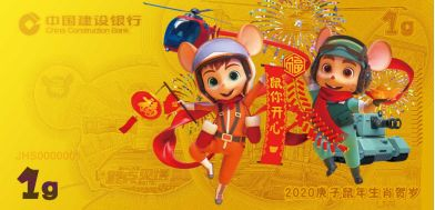时尚工艺铸造的建行鼠年压岁金,颜值出众趣味更升级!