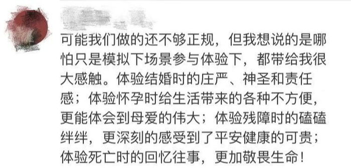 据介绍,参与活动的同学可以体验结婚、生子、残障、死亡等场景。