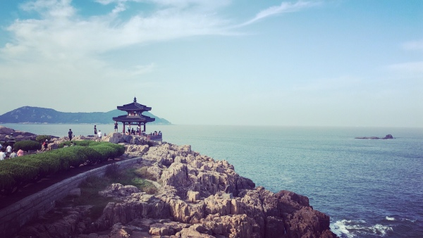普陀山沙滩有两处,分别名为“百步沙”和“千步沙”,就像名字那样,不算大,却撑起了普陀山“亲子游”的主要功能。确实,如今来普陀山除了香客,多是年轻家庭。