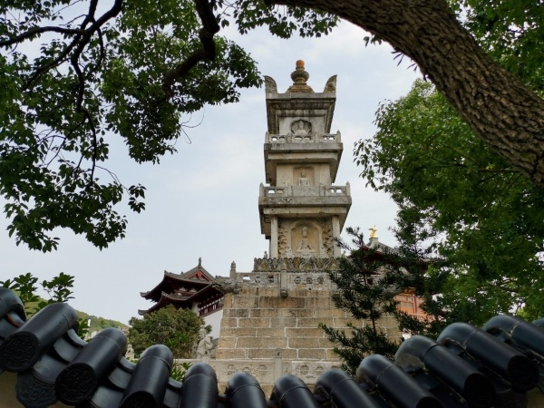 普济寺门前莲花池的一侧,通往岛内巴士站的小径上,能看到一处石塔,塔身四面雕刻着诸佛菩萨和天王,每每经过,我一直好奇石塔来历和建造时期。从外观和样式来看,这塔和普济寺及周围建筑显然分属不同时期,如今又被圈围在一处院落中,也无明显介绍。我在书中找到了答案。此塔建于1334年元顺帝统治时期,由“太子”宣让王捐赠而造,故名“太子塔”。宣让王帖木儿是忽必烈的皇孙,是彼时的“皇叔”,蒙古人习惯把男性皇亲都称为“太子”。当然,太子塔也可能是因为释迦摩尼为太子成佛而得其名。