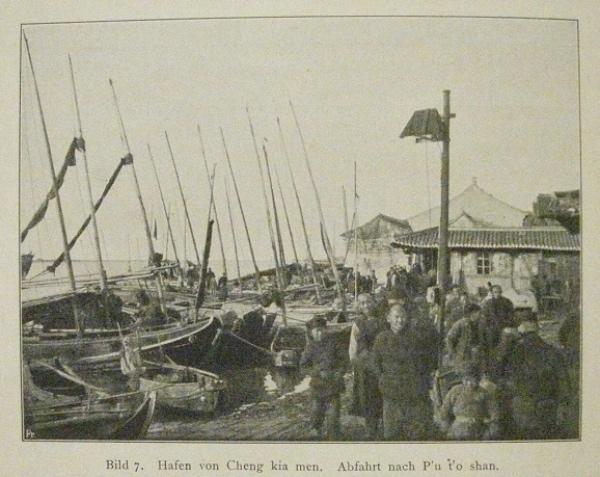 一百年前,从沈家门坐船去普陀山要两小时。德国建筑师恩斯特·柏石曼在1907年的最后一天,搭船从沈家门出发去普陀山。他原本想住在普济寺,结果发生了些状况,转去法雨寺。