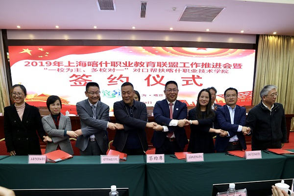 昨天,2019年沪喀职教联盟工作推进会暨“一校为主,多校对一”对口帮扶喀什职业技术学院签约仪式在新疆维吾尔自治区喀什地区举行。