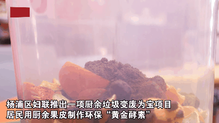如此神奇的操作,是杨浦区妇联推出的一项垃圾减量项目 “巧手妈妈环保行,厨余垃圾变废为宝”——用厨余果皮制作环保“黄金酵素”。据不完全统计,2018年至今该项目已减少橘子皮等果皮湿垃圾近10吨。