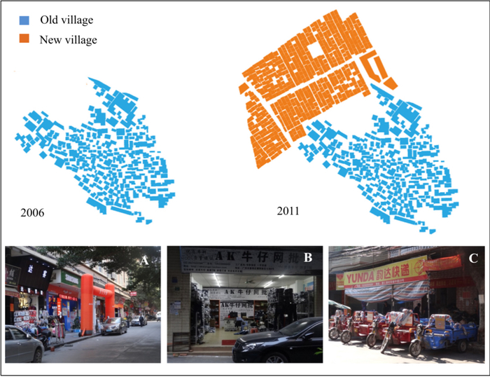 为了适应新的生产和消费形式,村庄经常发生复杂的空间转型。里仁洞村就是一个很好的例子,展示了一个传统的村庄如何转变为淘宝村。据村民和流动人口描述,1989年以后,里仁洞村的农田被市政府征用,用于房地产开发。村委会随后在原老村旁边规划了一个新村,以满足村民日益增长的生活需求。在20世纪90年代,该村几乎没有互联网接入。